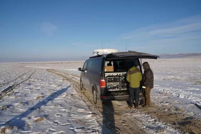 ▲測試組在冰天雪地的西北邊陲測試車輛