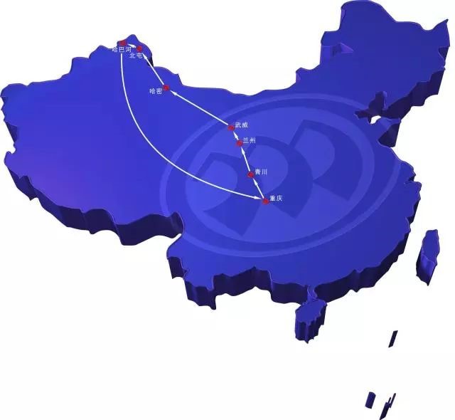 ▲測試組自重慶出發(fā),經(jīng)四川青川縣、甘肅蘭州市、武威市,經(jīng)新疆哈密市、北屯市,最終抵達哈巴河縣,后返回重慶。